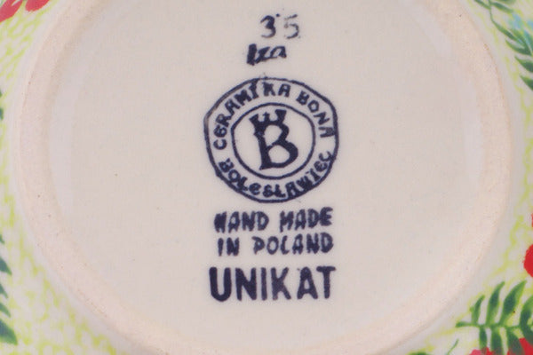 This Polish Pottery Bowl is handmade and handpainted by the Ceramika Bona factory in Boleslawiec, Poland. Manufacturer item number H8488Q. It is 3¼" high and measures 6¼" by 6¼". The capacity of this Bowl is 25.19 oz (brimful) and it weighs 1.1 lbs. It is part of the Metamorphosis Collection.