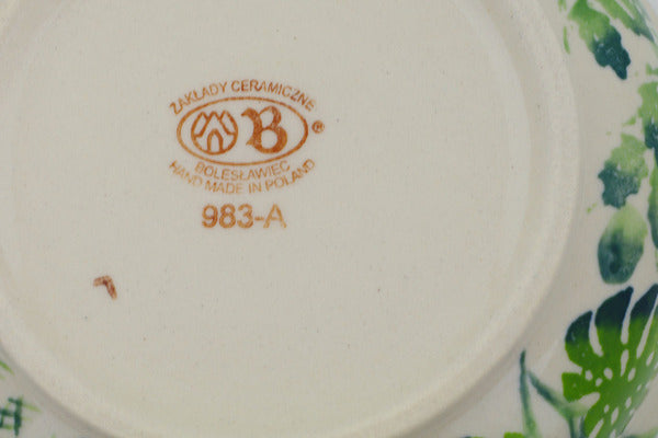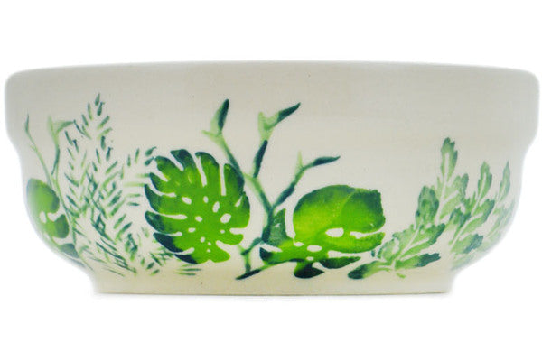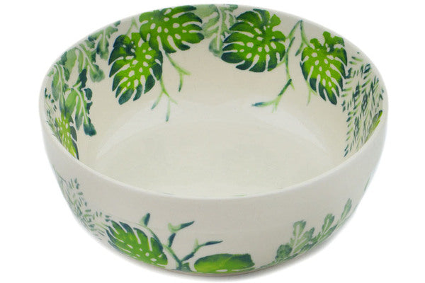This Polish Pottery Bowl is handmade and handpainted by the Zaklady Ceramiczne factory in Boleslawiec, Poland. Manufacturer item number H4577N. It is 2½" high and measures 6¼" by 6¼". The capacity of this Bowl is 21.13 oz (brimful) and it weighs 1.1 lbs. It is part of the Monstera Deliciosa Collection.