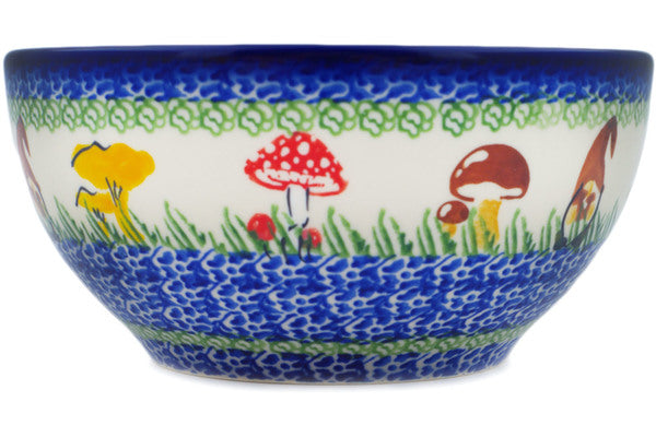 This Polish Pottery Bowl is handmade and handpainted by the Ceramika Nina factory in Boleslawiec, Poland. Manufacturer item number H1362P. It is 3¼" high and measures 6¼" by 6¼". The capacity of this Bowl is 25.19 oz (brimful) and it weighs 1.1 lbs. It is part of the Mushroom Garden Collection.