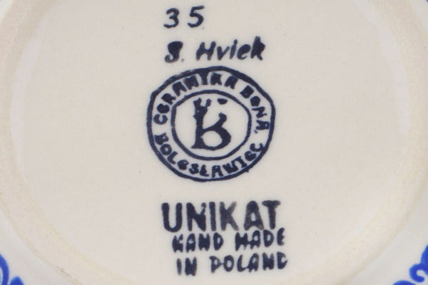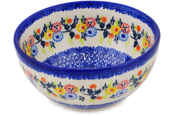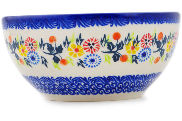 This Polish Pottery Bowl is handmade and handpainted by the Ceramika Bona factory in Boleslawiec, Poland. Manufacturer item number H2244R. It is 3¼" high and measures 6¼" by 6¼". The capacity of this Bowl is 25.19 oz (brimful) and it weighs 1.1 lbs. It is part of the Pastel Spring Wreath Collection.