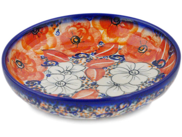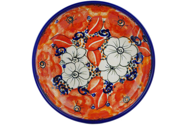 This Polish Pottery Bowl is handmade and handpainted by the Ceramika Bona factory in Boleslawiec, Poland. Manufacturer item number H5893R. It is 1¼" high and measures 6¼" by 6¼". The capacity of this Bowl is 10.62 oz (brimful) and it weighs 0.7 lbs. It is part of the Poppy Passion Collection.