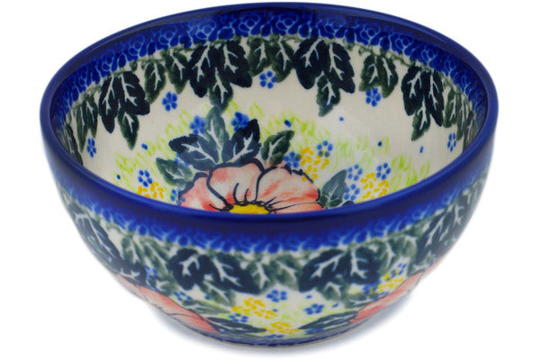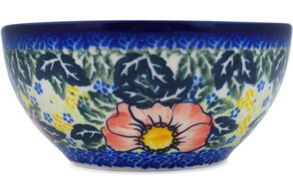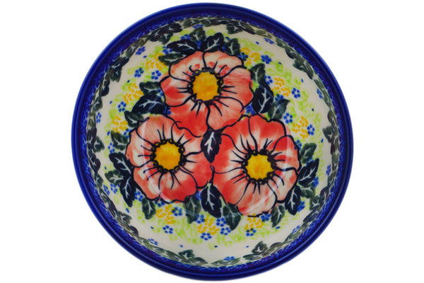 This Polish Pottery Bowl is handmade and handpainted by the Ceramika Nina factory in Boleslawiec, Poland. Manufacturer item number H1401P. It is 3¼" high and measures 6¼" by 6¼". The capacity of this Bowl is 25.19 oz (brimful) and it weighs 1.1 lbs. It is part of the Red Daisy Delight Collection.