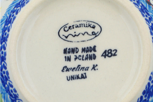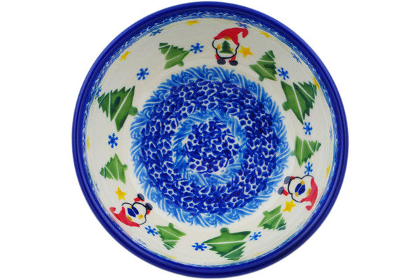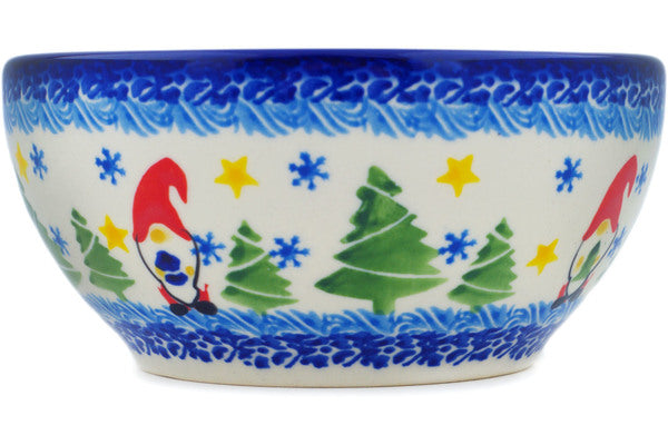This Polish Pottery Bowl is handmade and handpainted by the Ceramika Nina factory in Boleslawiec, Poland. Manufacturer item number H1366P. It is 2½" high and measures 5¼" by 5¼". The capacity of this Bowl is 16.23 oz (brimful) and it weighs 0.7 lbs. It is part of the Twinkle Twinkle Little Gnome Collection.