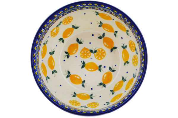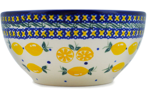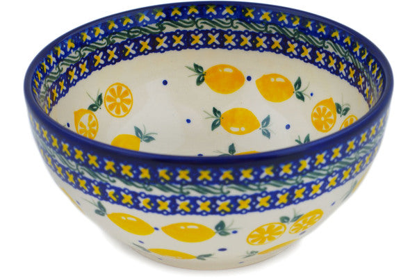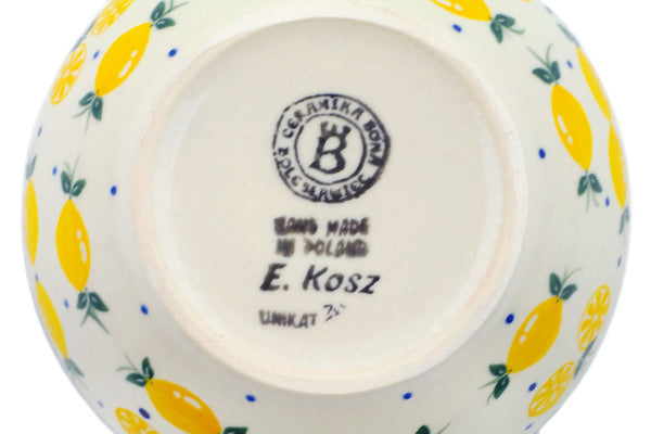 This Polish Pottery Bowl is handmade and handpainted by the Ceramika Bona factory in Boleslawiec, Poland. Manufacturer item number H0825P. It is 3¼" high and measures 6¼" by 6¼". The capacity of this Bowl is 25.19 oz (brimful) and it weighs 1.1 lbs. It is part of the When Life Gives You Lemons Collection.