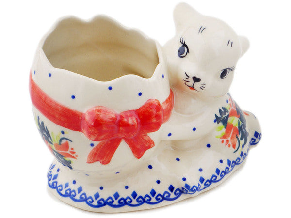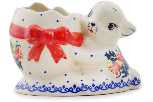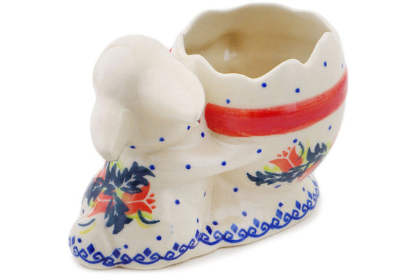 This Polish Pottery Bunny Shaped Jar is handmade and handpainted by the Ceramika Bona factory in Boleslawiec, Poland. Manufacturer item number H8815Q. It is 4¼" high and measures 6¼" by 4". The weight of this Bunny Shaped Jar is 1.4 lbs. It is part of the California Poppies Collection.