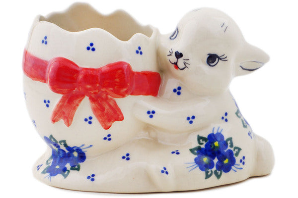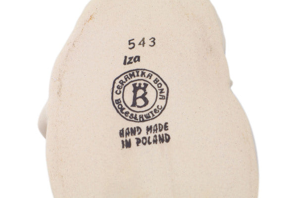 This Polish Pottery Bunny Shaped Jar is handmade and handpainted by the Ceramika Bona factory in Boleslawiec, Poland. Manufacturer item number H9636Q. It is 4¼" high and measures 6¼" by 4". The weight of this Bunny Shaped Jar is 1.4 lbs. It is part of the Poppy Triad Collection.