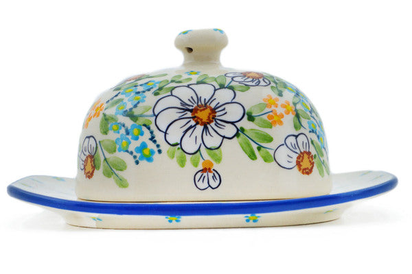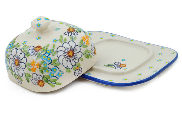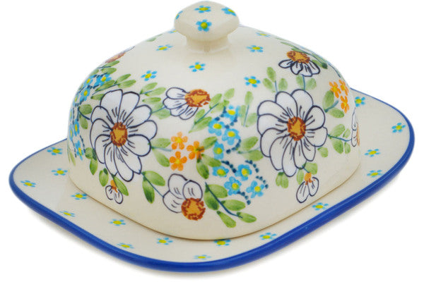 This Polish Pottery Butter Dish is handmade and handpainted by the Manufaktura factory in Boleslawiec, Poland. Manufacturer item number H2226P. It is 3¼" high and measures 6½" by 5¼". The weight of this Butter Dish is 1.3 lbs. It is part of the Delicate Collection.