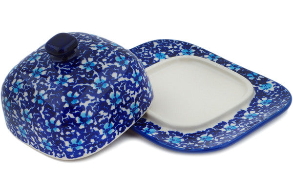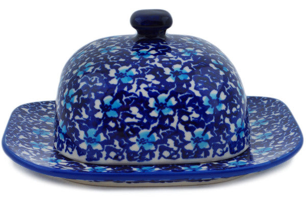 This Polish Pottery Butter Dish is handmade and handpainted by the Manufaktura factory in Boleslawiec, Poland. Manufacturer item number H5918O. It is 3¼" high and measures 6½" by 5¼". The weight of this Butter Dish is 1.3 lbs. It is part of the Flowers On The Lake Collection.