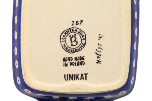 This is a Polish pottery Unikat (Signature) Butter Dish, which means that it has been hand painted with both sponges and brushes and it is signed by the artist who painted it. Unikat pieces are the most intricate works of art. Larger Unikat items take hours of very careful work to finish.