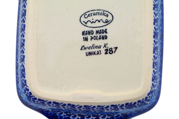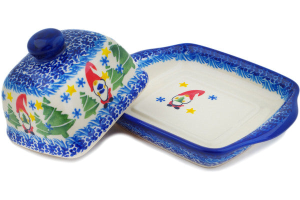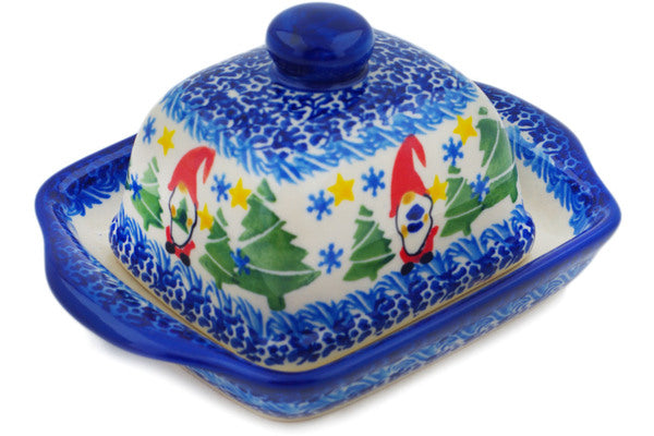 This Polish Pottery Butter Dish is handmade and handpainted by the Ceramika Nina factory in Boleslawiec, Poland. Manufacturer item number H1429P. It is 3¼" high and measures 6½" by 5". The weight of this Butter Dish is 1.4 lbs. It is part of the Twinkle Twinkle Little Gnome Collection.
