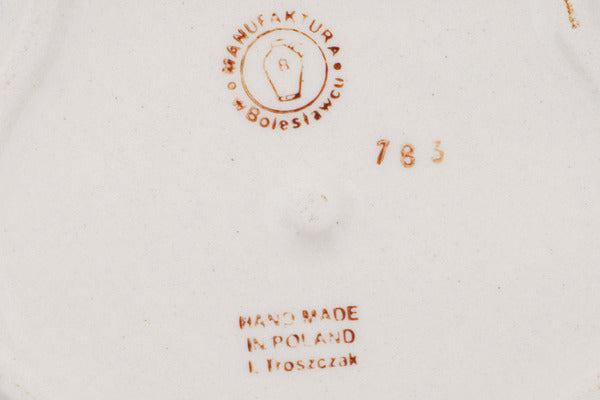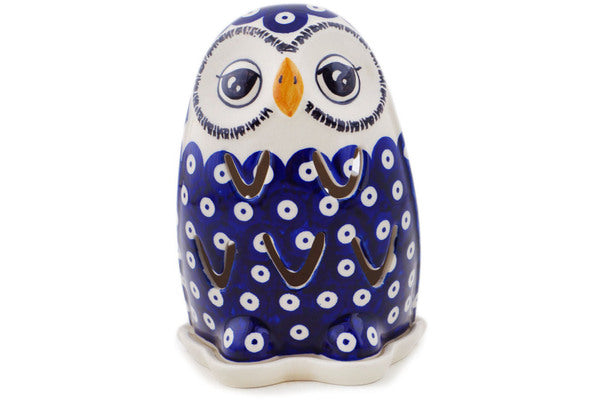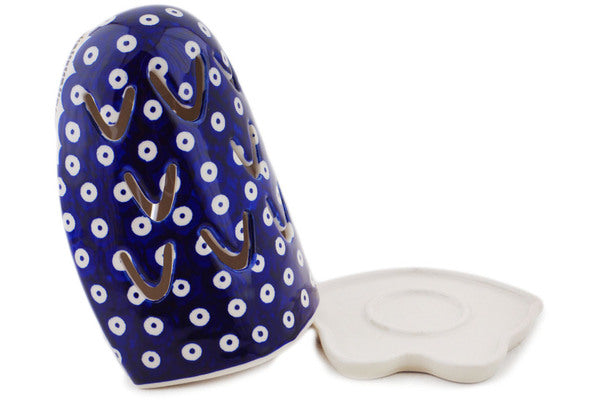 This Polish Pottery Candle Holder is handmade and handpainted by the Manufaktura factory in Boleslawiec, Poland. Manufacturer item number H8400Q. It is 6½" high and measures 4¼" by 4¼". The weight of this Candle Holder is 1.1 lbs. It is part of the Peacock Eyes Collection.