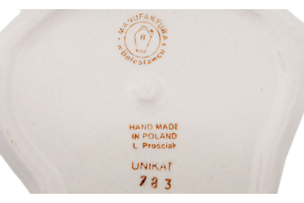 This is a Polish pottery Unikat (Signature) Candle Holder, which means that it has been hand painted with both sponges and brushes and it is signed by the artist who painted it. Unikat pieces are the most intricate works of art. Larger Unikat items take hours of very careful work to finish.