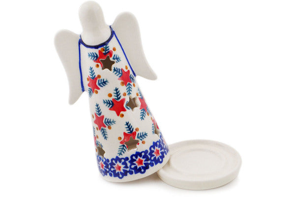 This Polish Pottery Candle Holder is handmade and handpainted by the Manufaktura factory in Boleslawiec, Poland. Manufacturer item number H8457Q. It is 6½" high and measures 3¼" by 3". The weight of this Candle Holder is 0.7 lbs. It is part of the Starry Wreath Collection.