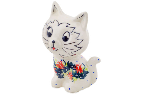 This Polish Pottery Cat Figurine is handmade and handpainted by the Ceramika Bona factory in Boleslawiec, Poland. Manufacturer item number H9559Q. It is 6¼" high and measures 4½" by 2". The weight of this Cat Figurine is 0.6 lbs. It is part of the California Poppies Collection.