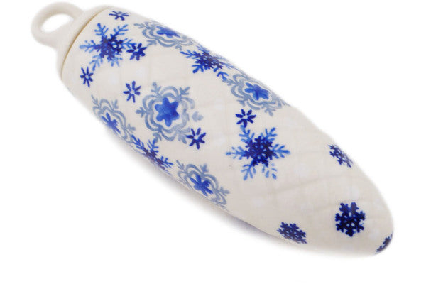 This Polish Pottery Christmas Ball Ornament is handmade and handpainted by the Manufaktura factory in Boleslawiec, Poland. Manufacturer item number H8598Q. It is 5¾" high and measures 1¾" by 1¾". The weight of this Christmas Ball Ornament is 0.3 lbs. It is part of the Flurry Fun Collection.