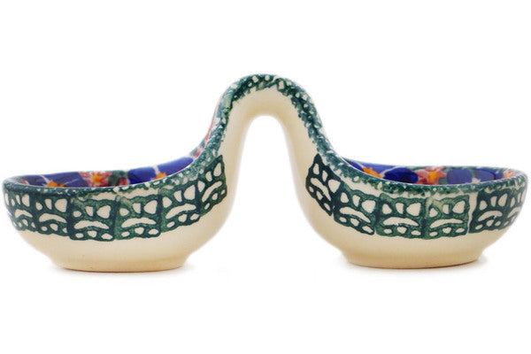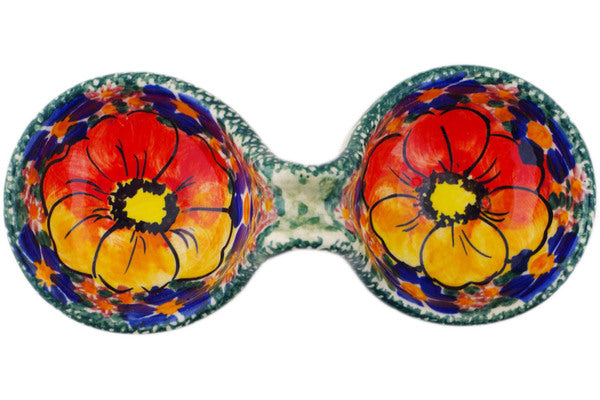 This Polish Pottery Condiment Dish is handmade and handpainted by the Cer-Raf factory in Boleslawiec, Poland. Manufacturer item number H3491L. It is 2" high and measures 6" by 2½". The capacity of this Condiment Dish is 3.38 oz (brimful) and it weighs 0.3 lbs. It is part of the Fire Poppies Collection.