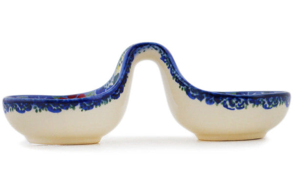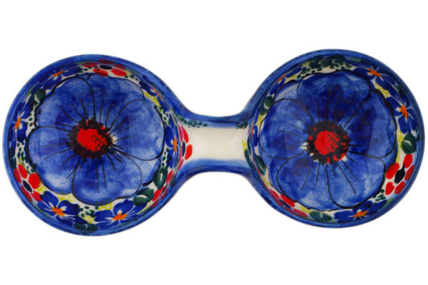 This Polish Pottery Condiment Dish is handmade and handpainted by the Cer-Raf factory in Boleslawiec, Poland. Manufacturer item number H5240R. It is 2" high and measures 6" by 2½". The capacity of this Condiment Dish is 3.38 oz (brimful) and it weighs 0.3 lbs. It is part of the Fountain Blue Garden Collection.