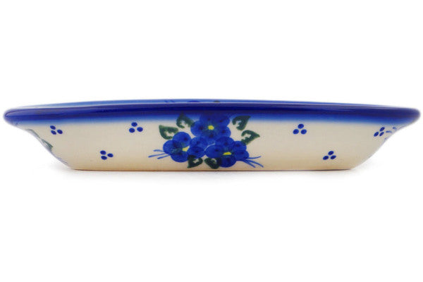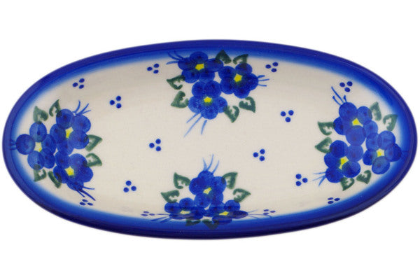 This Polish Pottery Condiment Dish is handmade and handpainted by the Ceramika Bona factory in Boleslawiec, Poland. Manufacturer item number H9560Q. It is 1" high and measures 6½" by 3¼". The capacity of this Condiment Dish is 4.23 oz (brimful) and it weighs 0.4 lbs. It is part of the Poppy Triad Collection.