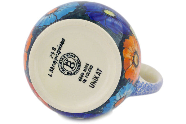 This is a Polish pottery Unikat (Signature) Pitcher, which means that it has been hand painted with both sponges and brushes and it is signed by the artist who painted it. Unikat pieces are the most intricate works of art. Larger Unikat items take hours of very careful work to finish.