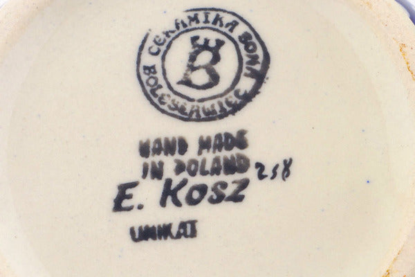 This is a Polish pottery Unikat (Signature) Pitcher, which means that it has been hand painted with both sponges and brushes and it is signed by the artist who painted it. Unikat pieces are the most intricate works of art. Larger Unikat items take hours of very careful work to finish.