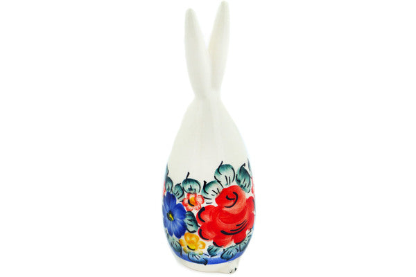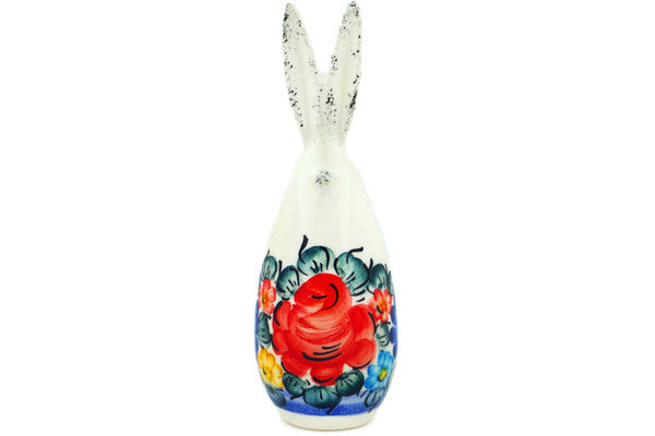 This faience Bunny Figurine is create by the Fajans Wloclawek factory in Poland. Manufacturer item number H5750M. It is 6" high and measures 2" by 2". The weight of this Bunny Figurine is 0.3 lbs. It is part of the Little Flower Patch Collection.
