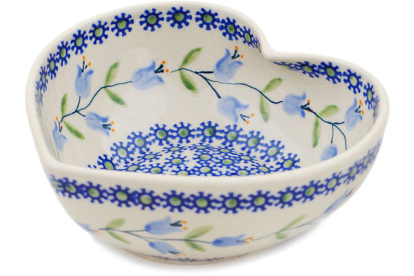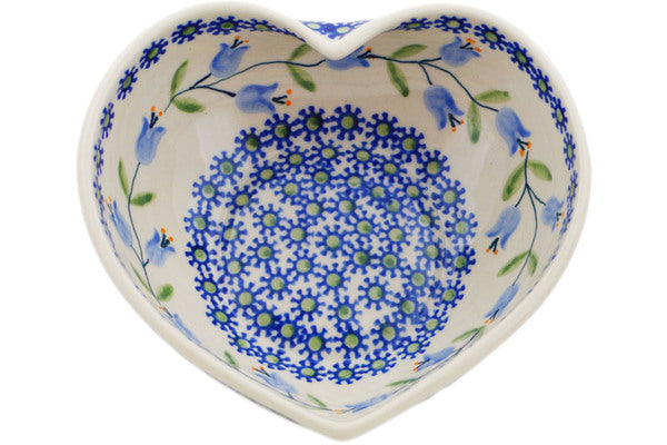 This Polish Pottery Heart Shaped Bowl is handmade and handpainted by the Manufaktura factory in Boleslawiec, Poland. Manufacturer item number H0342O. It is 2¼" high and measures 5¾" by 5¾". The capacity of this Heart Shaped Bowl is 15.89 oz (brimful) and it weighs 0.7 lbs. It is part of the Sweet Dreams Collection.