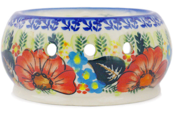 This Polish Pottery Heater is handmade and handpainted by the Ceramika Bona factory in Boleslawiec, Poland. Manufacturer item number H6685R. It is 2¾" high and measures 5¾" by 5½". The weight of this Heater is 1.1 lbs. It is part of the Bold Red Poppies Collection.