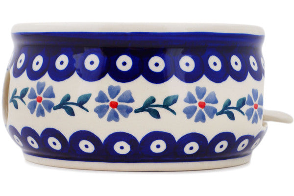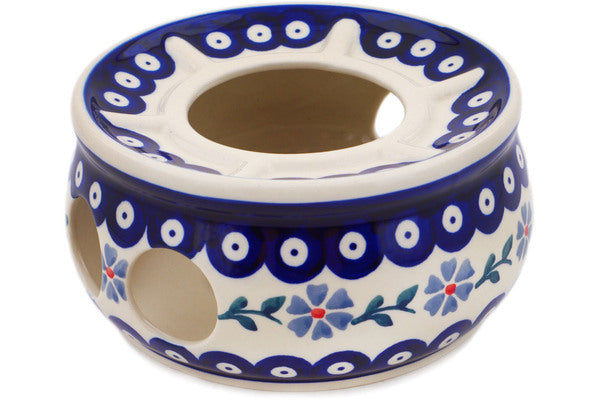 This Polish Pottery Heater is handmade and handpainted by the Manufaktura factory in Boleslawiec, Poland. Manufacturer item number H7307O. It is 3" high and measures 6¼" by 6". The weight of this Heater is 1.6 lbs. It is part of the Peacock Forget-Me-Not Collection.