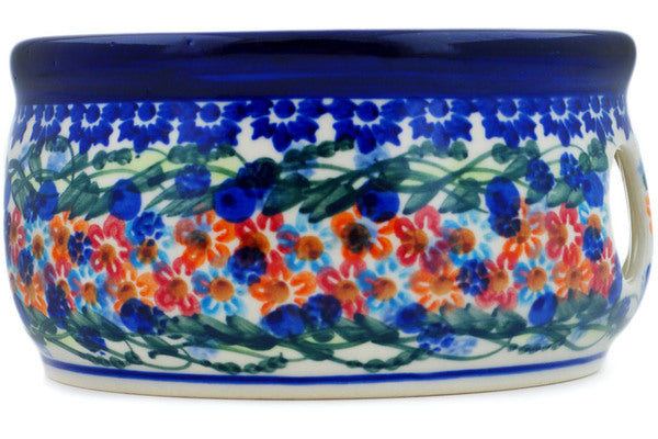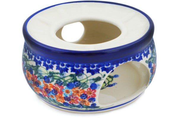This Polish Pottery Heater is handmade and handpainted by the Two People factory in Boleslawiec, Poland. Manufacturer item number H0675P. It is 3¼" high and measures 6" by 6". The weight of this Heater is 1.5 lbs. It is part of the Starburst Garland Collection.