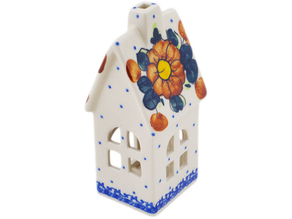 This Polish Pottery House Shaped Candle Holder is handmade and handpainted by the Ceramika Bona factory in Boleslawiec, Poland. Manufacturer item number H1693Q. It is 6½" high and measures 3" by 2¾". The weight of this House Shaped Candle Holder is 0.8 lbs. It is part of the Autumn Pansies Collection.
