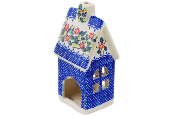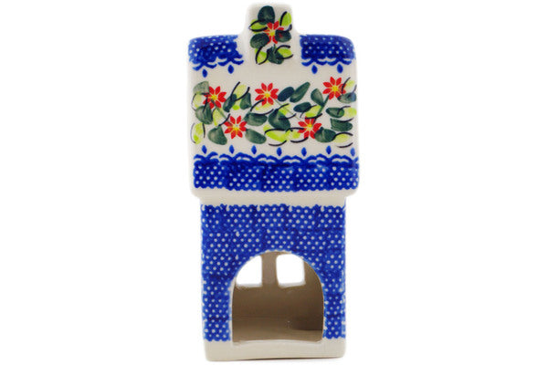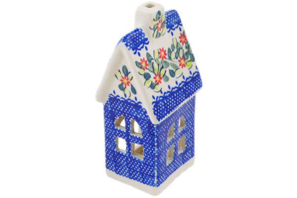 This Polish Pottery House Shaped Candle Holder is handmade and handpainted by the Ceramika Bona factory in Boleslawiec, Poland. Manufacturer item number H1786Q. It is 6½" high and measures 3" by 2¾". The weight of this House Shaped Candle Holder is 0.8 lbs. It is part of the Elegant Garland Collection.
