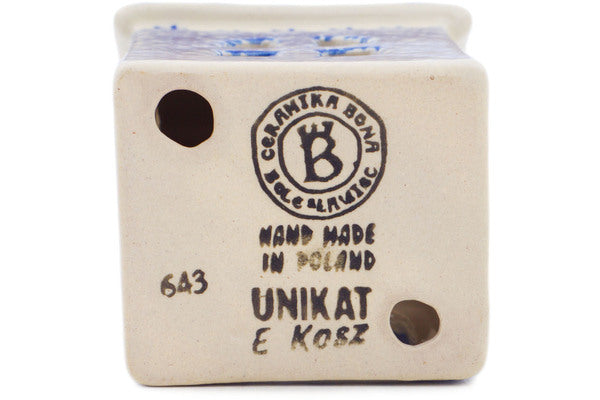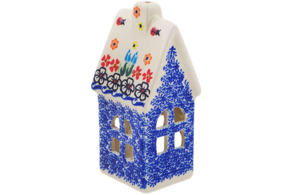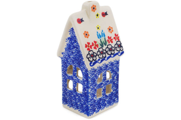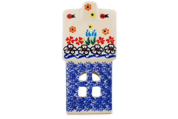 This Polish Pottery House Shaped Candle Holder is handmade and handpainted by the Ceramika Bona factory in Boleslawiec, Poland. Manufacturer item number H4171Q. It is 6½" high and measures 3" by 2¾". The weight of this House Shaped Candle Holder is 0.8 lbs. It is part of the Fanciful Ladybug Collection.