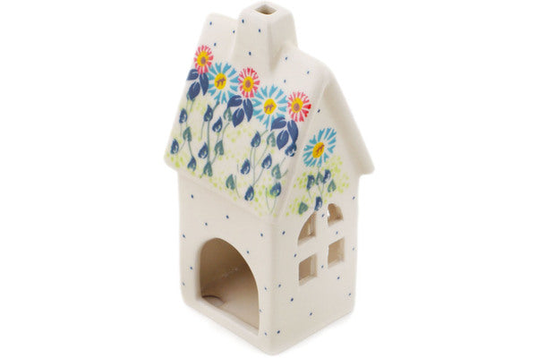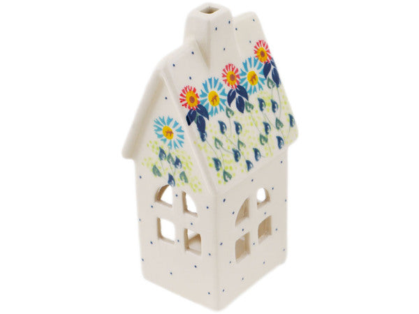 This Polish Pottery House Shaped Candle Holder is handmade and handpainted by the Ceramika Bona factory in Boleslawiec, Poland. Manufacturer item number H2156R. It is 6½" high and measures 3" by 2¾". The weight of this House Shaped Candle Holder is 0.8 lbs. It is part of the Long-stemmed Beauties Collection.