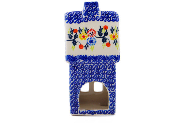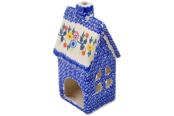 This Polish Pottery House Shaped Candle Holder is handmade and handpainted by the Ceramika Bona factory in Boleslawiec, Poland. Manufacturer item number H2062R. It is 6½" high and measures 3" by 2¾". The weight of this House Shaped Candle Holder is 0.8 lbs. It is part of the Pastel Spring Wreath Collection.