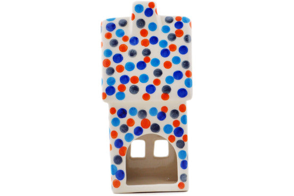 This Polish Pottery House Shaped Candle Holder is handmade and handpainted by the Ceramika Bona factory in Boleslawiec, Poland. Manufacturer item number H2105R. It is 6½" high and measures 3" by 2¾". The weight of this House Shaped Candle Holder is 0.8 lbs. It is part of the Polka Dot Frenzy Collection.