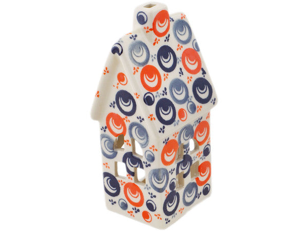 This Polish Pottery House Shaped Candle Holder is handmade and handpainted by the Ceramika Bona factory in Boleslawiec, Poland. Manufacturer item number H7190Q. It is 6½" high and measures 3" by 2¾". The weight of this House Shaped Candle Holder is 0.8 lbs. It is part of the Red Peacock Eye Collection.
