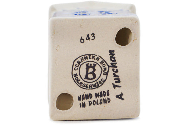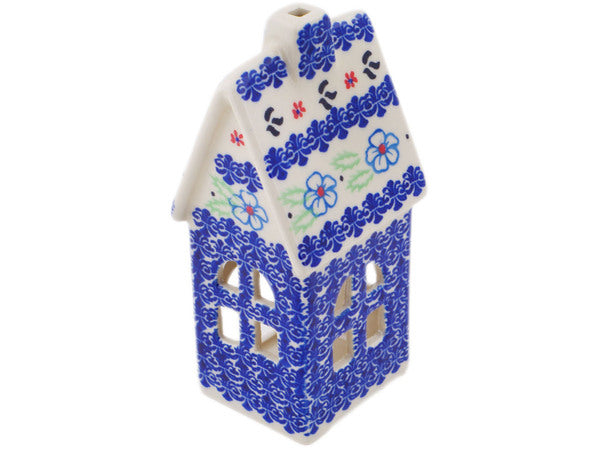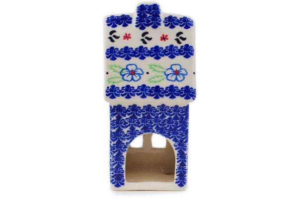 This Polish Pottery House Shaped Candle Holder is handmade and handpainted by the Ceramika Bona factory in Boleslawiec, Poland. Manufacturer item number H2166R. It is 6½" high and measures 3" by 2¾". The weight of this House Shaped Candle Holder is 0.8 lbs. It is part of the Sweet Day Collection.