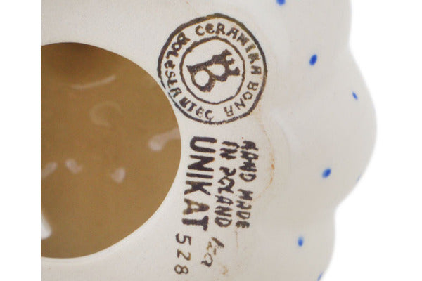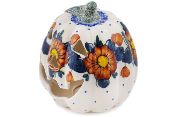 This Polish Pottery Jack O Lantern Candle Holder is handmade and handpainted by the Ceramika Bona factory in Boleslawiec, Poland. Manufacturer item number H0227Q. It is 5¾" high and measures 5¼" by 4¾". The weight of this Jack O Lantern Candle Holder is 0.9 lbs. It is part of the Autumn Pansies Collection.