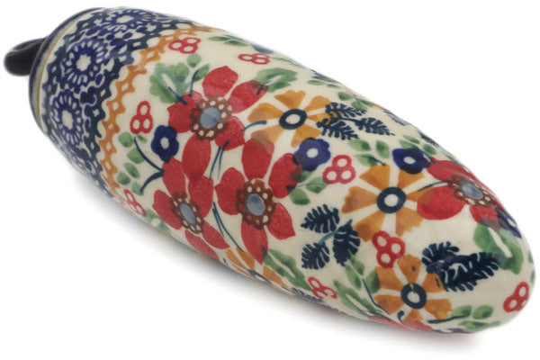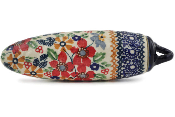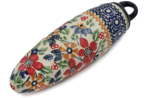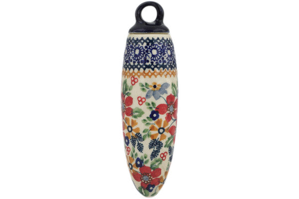 This Polish Pottery Christmas Ball Ornament is handmade and handpainted by the Manufaktura factory in Boleslawiec, Poland. Manufacturer item number H7753K. It is 5¾" high and measures 1¾" by 1¾". The weight of this Christmas Ball Ornament is 0.3 lbs. It is part of the Ruby Bouquet Collection.