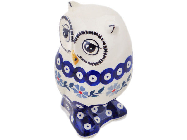 This Polish Pottery Owl Figurine is handmade and handpainted by the Manufaktura factory in Boleslawiec, Poland. Manufacturer item number H6968O. It is 6¼" high and measures 3¾" by 3¼". The weight of this Owl Figurine is 0.9 lbs. It is part of the Peacock Forget-Me-Not Collection.