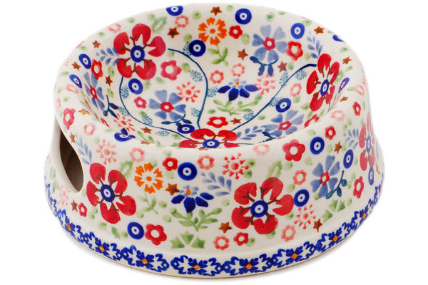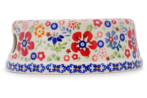This Polish Pottery Pet Bowl is handmade and handpainted by the Manufaktura factory in Boleslawiec, Poland. Manufacturer item number H8417P. It is 2¼" high and measures 6½" by 6½". The capacity of this Pet Bowl is 10.96 oz (brimful) and it weighs 1.4 lbs. It is part of the Botanical Sprinkles Collection.