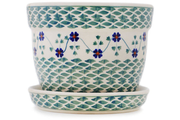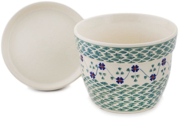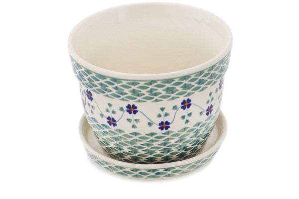 This Polish Pottery Planter is handmade and handpainted by the Manufaktura factory in Boleslawiec, Poland. Manufacturer item number H8323Q. It is 5" high and measures 6" by 6". The weight of this Planter is 2.3 lbs. It is part of the Lucky Blue Clover Collection.