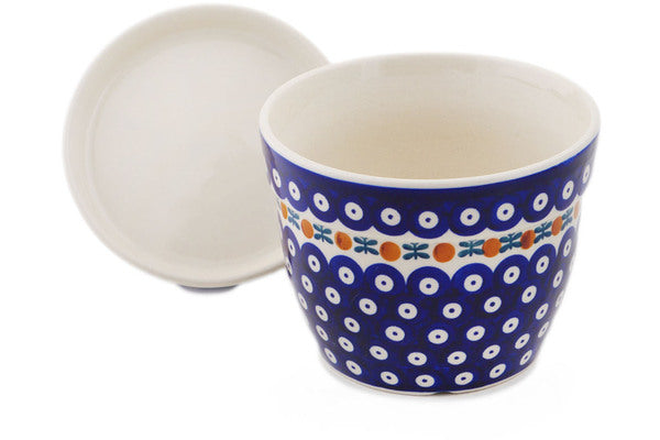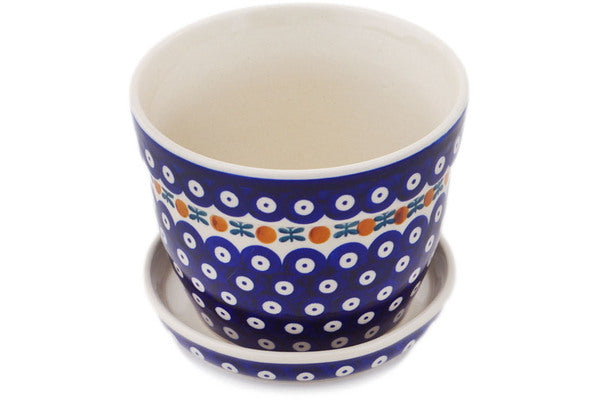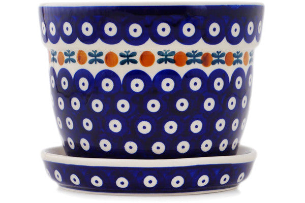 This Polish Pottery Planter is handmade and handpainted by the Manufaktura factory in Boleslawiec, Poland. Manufacturer item number H8309Q. It is 5" high and measures 6" by 6". The weight of this Planter is 2.3 lbs. It is part of the Mosquito Collection.
