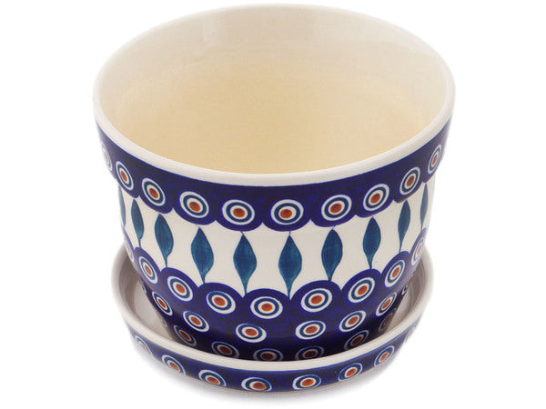 This Polish Pottery Planter is handmade and handpainted by the Manufaktura factory in Boleslawiec, Poland. Manufacturer item number H2654K. It is 5" high and measures 6" by 6". The weight of this Planter is 2.3 lbs. It is part of the Peacock Collection.