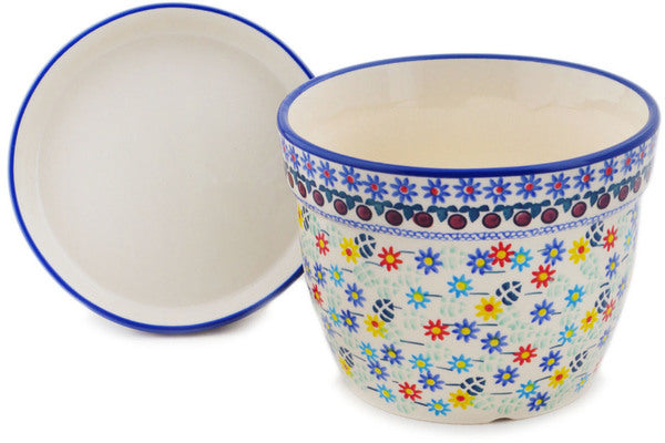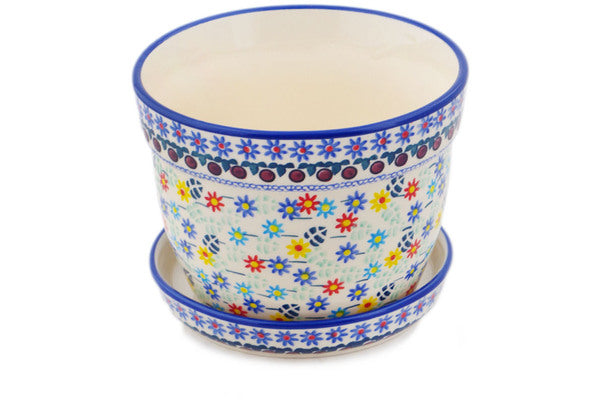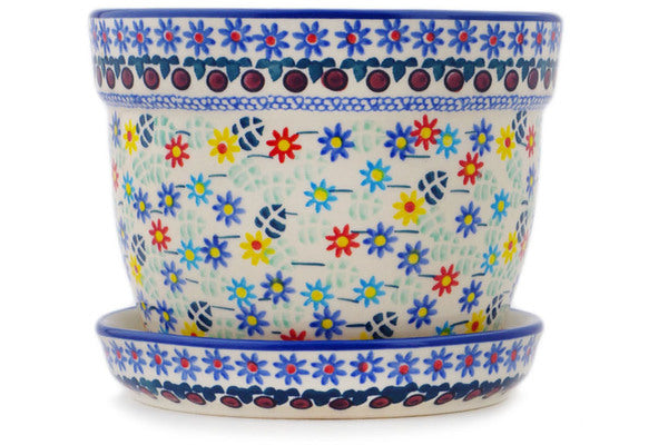 This Polish Pottery Planter is handmade and handpainted by the Manufaktura factory in Boleslawiec, Poland. Manufacturer item number H8314Q. It is 5" high and measures 6" by 6". The weight of this Planter is 2.3 lbs. It is part of the Primary Spring Collection.