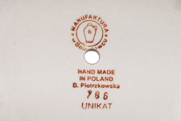 This is a Polish pottery Unikat (Signature) Planter, which means that it has been hand painted with both sponges and brushes and it is signed by the artist who painted it. Unikat pieces are the most intricate works of art. Larger Unikat items take hours of very careful work to finish.
