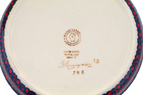This is a Polish pottery Unikat (Signature) Planter, which means that it has been hand painted with both sponges and brushes and it is signed by the artist who painted it. Unikat pieces are the most intricate works of art. Larger Unikat items take hours of very careful work to finish.