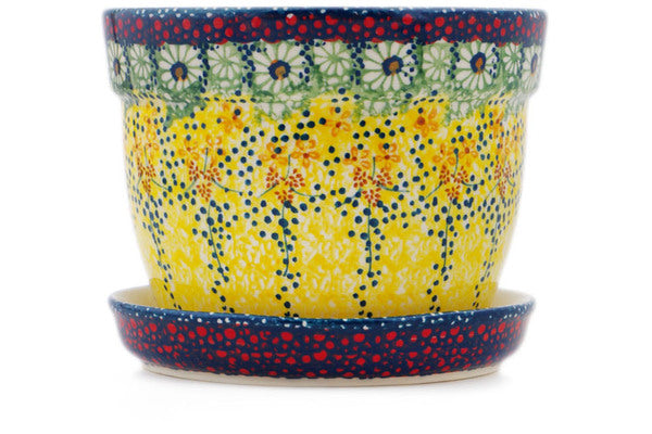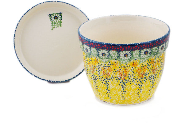 This Polish Pottery Planter is handmade and handpainted by the Manufaktura factory in Boleslawiec, Poland. Manufacturer item number H8326Q. It is 5" high and measures 6" by 6". The weight of this Planter is 2.3 lbs. It is part of the Sunshine Grotto Collection.