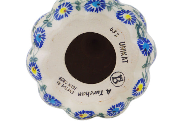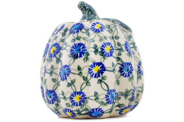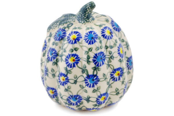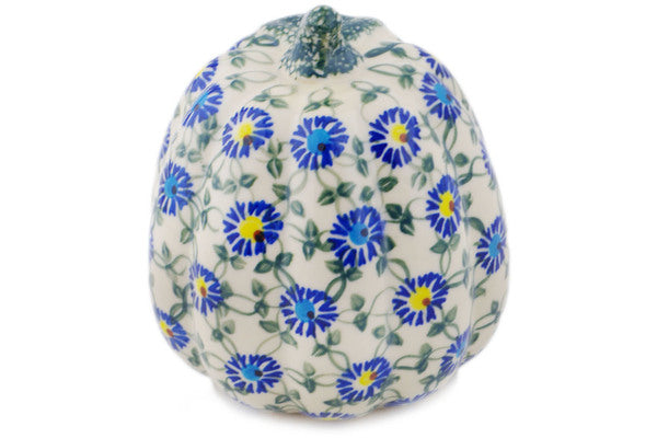 This Polish Pottery Pumpkin Figurine is handmade and handpainted by the Ceramika Bona factory in Boleslawiec, Poland. Manufacturer item number H2249R. It is 6¼" high and measures 5½" by 5½". The weight of this Pumpkin Figurine is 1.4 lbs. It is part of the Blue Thistle Beauty Collection.