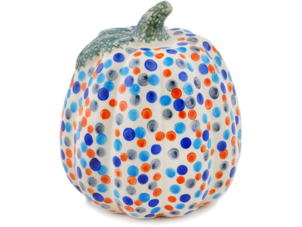 This Polish Pottery Pumpkin Figurine is handmade and handpainted by the Ceramika Bona factory in Boleslawiec, Poland. Manufacturer item number H2013R. It is 6¼" high and measures 5½" by 5½". The weight of this Pumpkin Figurine is 1.4 lbs. It is part of the Polka Dot Frenzy Collection.